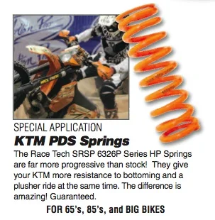 SIX12 Suspension uses all Race Tech HI-Performance Springs. To find out exactly what Spring Rate you need based on bike, weight, riding ability and terrain, check out our Product Search